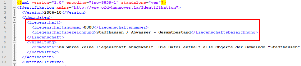Dies gilt nur für die Formate ISYBAU 2006 und ISYBAU 2013. Mit dem Austauschformat ISYBAU 2017 ist die Liegenschaft eine sogenannte Ordnungseinheit und befindet sich daher im Bereich Admindaten und Ordnungseinheiten.