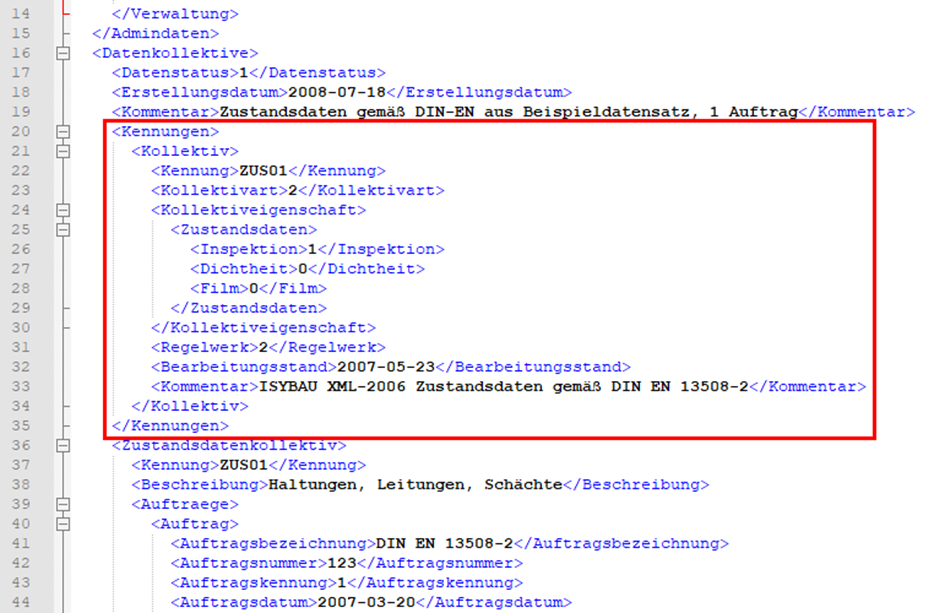 Fehlende Definition der Kennungen für die Kollektive im Bereich der Datenkollektive. Beispielhafte Definition der Kennungen: