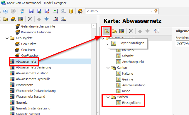 Das Gesamtmodell liefert diesbezüglich eine Layervorlage „Einzugsfläche“.
