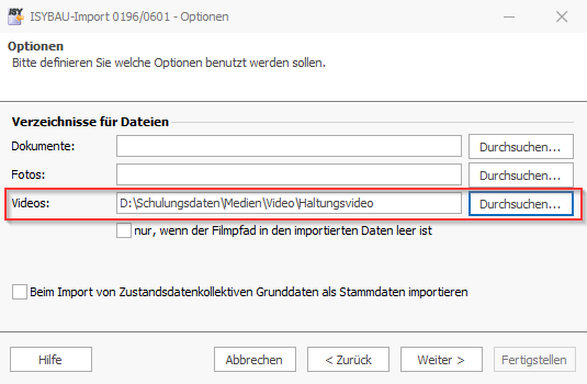 4. Führen Sie nun den Import der ISYBAU ZF-Datei durch. Durch diesen Import wurden jetzt die Ansteuerungsdaten der digitalen Zustandsfilme importiert und zugleich die Referenz du den jeweiligen, inspizierten Haltungen. Durch die Pfadangabe zu den digitalen Zustandsvideos sollten Sie nun über die schematische Haltungsgrafik die Inspektionsvideos schadensgenau ansteuern können.