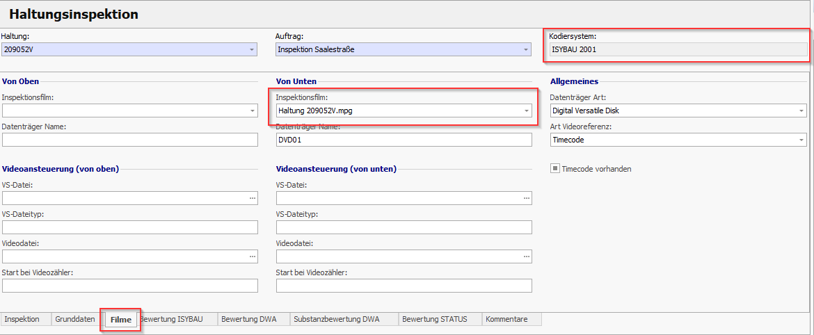 Durch den Import der Inspektionsdaten sind die inspizierten Haltungen einem Inspektionsauftrag zugeordnet. Ein dem Auftrag zugeordnetes Kodiersystem gibt an welche Kodes bei der Inspektion verwendet wurden. Dieses wird durch den Import einer ISYBAU ZF-Datei verändert und muss/sollte zurückgestellt werden.