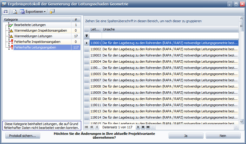 Nachfolgend werden nun zwei Möglichkeiten beschrieben, wie diese Meldung behoben werden kann und die Leitungsschäden korrekt erstellt werden können.