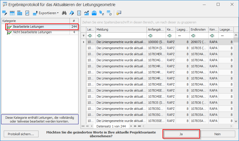 Im folgenden Fenster erscheint eine Anzeige der aktualisierten Haltungen, bestätigen Sie hier mit Ja um die Aktualisierungen in die Datenbank zu schreiben.
