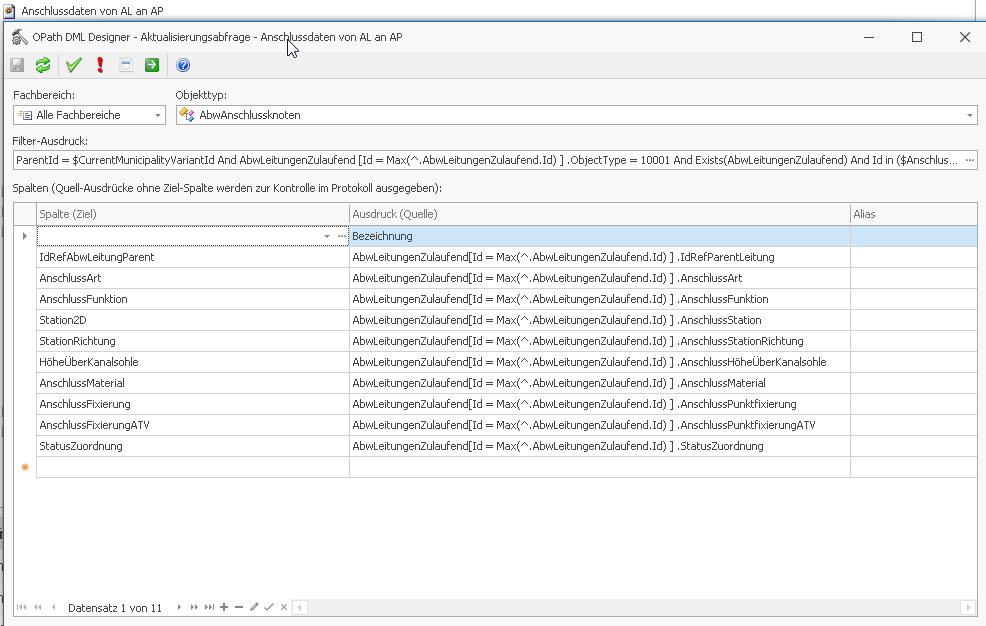 Sollen nicht alle Dateninhalte aller Anschlussdatenfelder übertragen werden oder andere Anforderungen am Datenfluss vorliegen, so müsste die Abfrage entsprechend individuell angepasst werden.