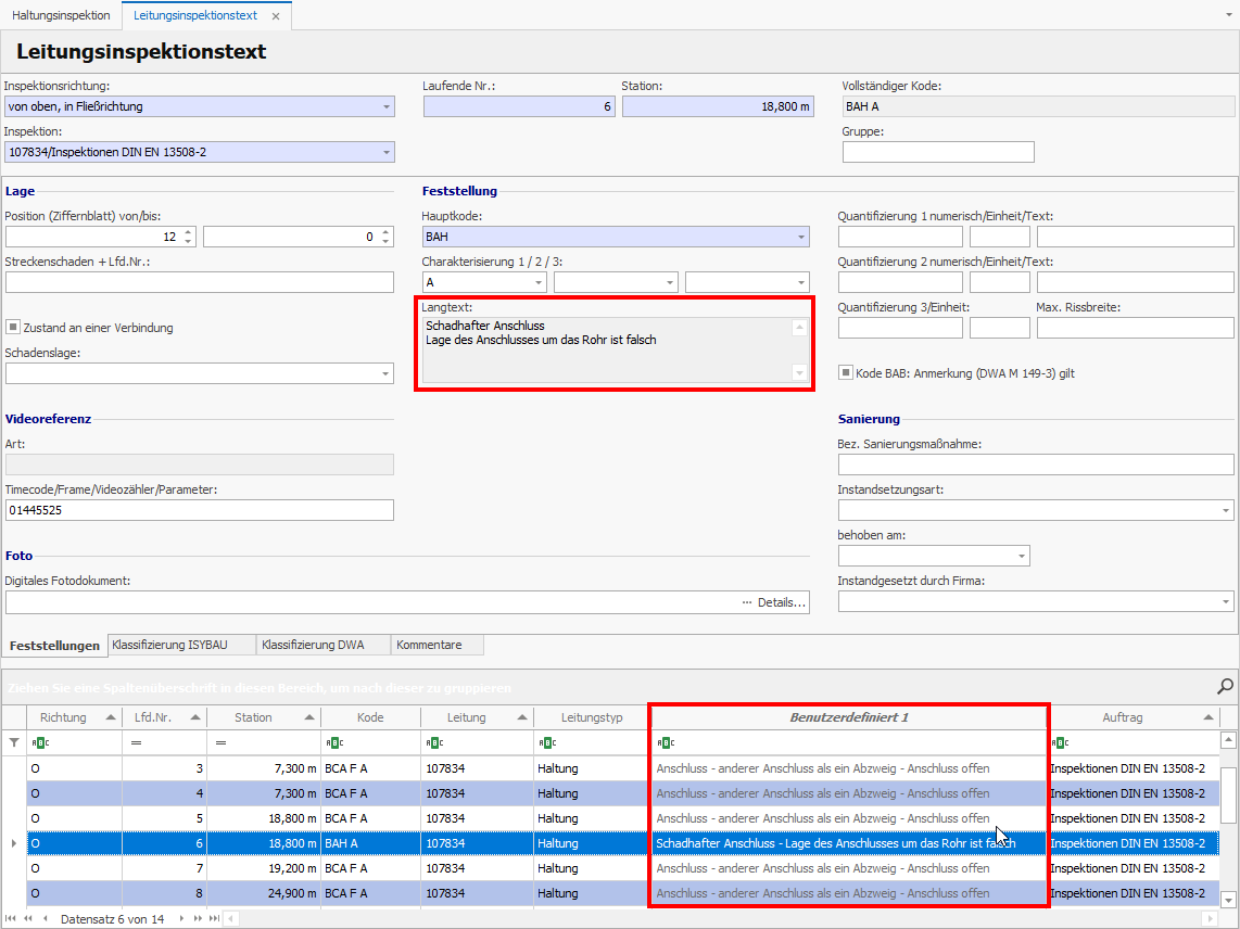 Möglichkeit 1: Nutzung von „InspektionsBeschreibung“ (mehrzeilig)