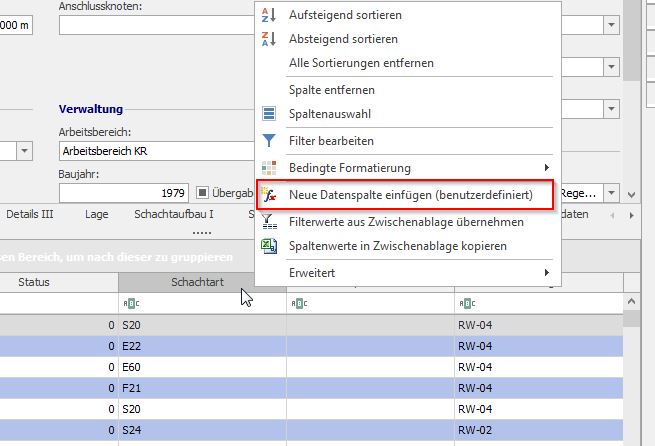 Fügen Sie per Rechts-Klick auf eine vorhandene Spaltenüberschrift in der Tabelle eine „Datenspalte“ ein.