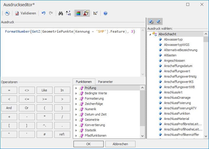 FormatNumber(GetZ(GeometriePunkte[Kennung = ‚SMP‘].Feature), 3)