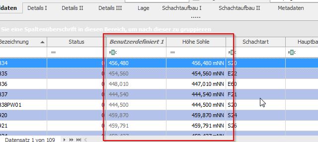 Die Geometrien der einzelnen Objekte liegen in separaten Tabellen. Die in den Stammdaten angegebenen Höhen-Werte sind somit getrennt von den Geometrie-Höhen in der Datenbank abgelegt. Um diese Werte zu vergleichen, kann die Geometrie-Höhe mit entsprechender Kennung in der Tabellen-Ansicht der Stammdaten eingefügt werden.