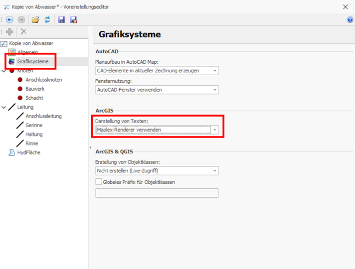 Dem neuen duplizierten Dokument können Sie dann eine eigene Bezeichnung geben und im Anschluss per Rechtsklick „Dokument übernehmen“ auswählen. Nun können Sie unter dem Register „Grafiksysteme“ die Einstellung „Maplex-Renderer verwenden“ vornehmen und das Dokument speichern und schließen. Die Voreinstellungen gelten auch bei neuen Projekten in ArcMap solange, bis in den Voreinstellungen eine andere Option definiert wird.
