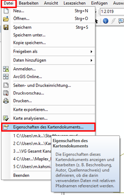 Diese Informationen werden in das Kartenpaket integriert und können von anderen Benutzern über „Datei“ und „Eigenschaften des Kartendokuments“ aufgerufen werden.