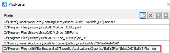 3. Mit dem BricsCAD Befehl „_options“ den Supportpfad zum Ordner „BaSYS-Plan_de“ definieren.